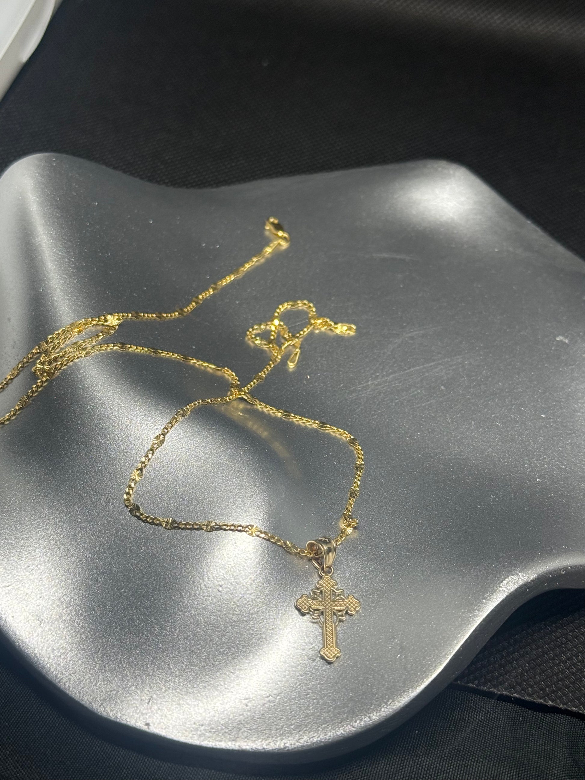 Crafted in genuine 14K gold, this delicate 20-inch necklace carries a beautifully detailed cross pendant — a reminder of strength, grace, and God’s covering over your life.