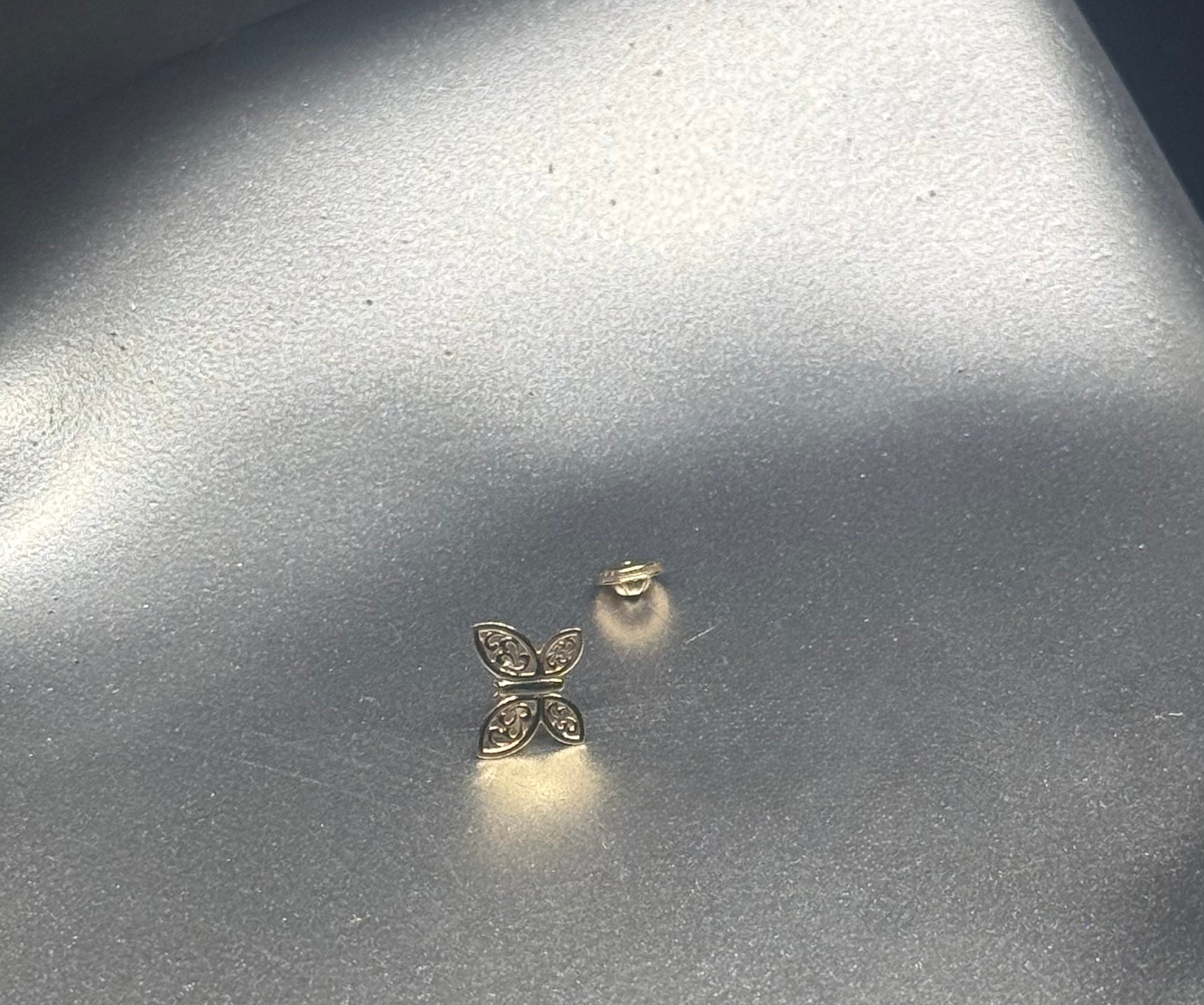 Delicate, feminine, and full of charm. These real 14K gold butterfly studs feature a beautiful filigree-style design that adds soft detail and sparkle without being overwhelming. Lightweight and timeless, they’re perfect for everyday wear, second piercings, or gifting someone special.