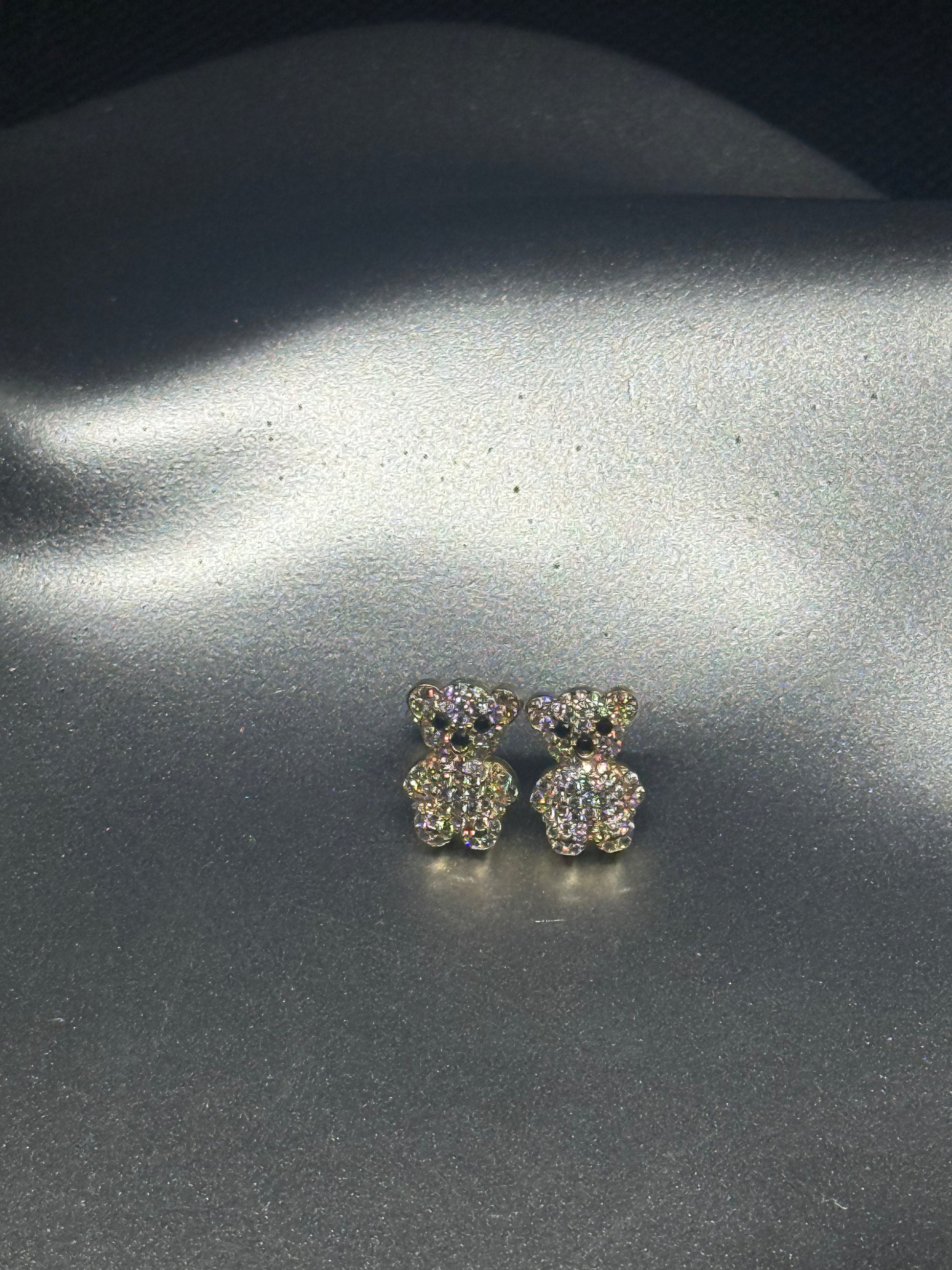 A playful sparkle with a touch of elegance. These 14K teddy bear studs are fully pavé-set with brilliant crystals and finished with black-stone eyes for that irresistible charm. Lightweight, classy, and perfect for everyday shine.