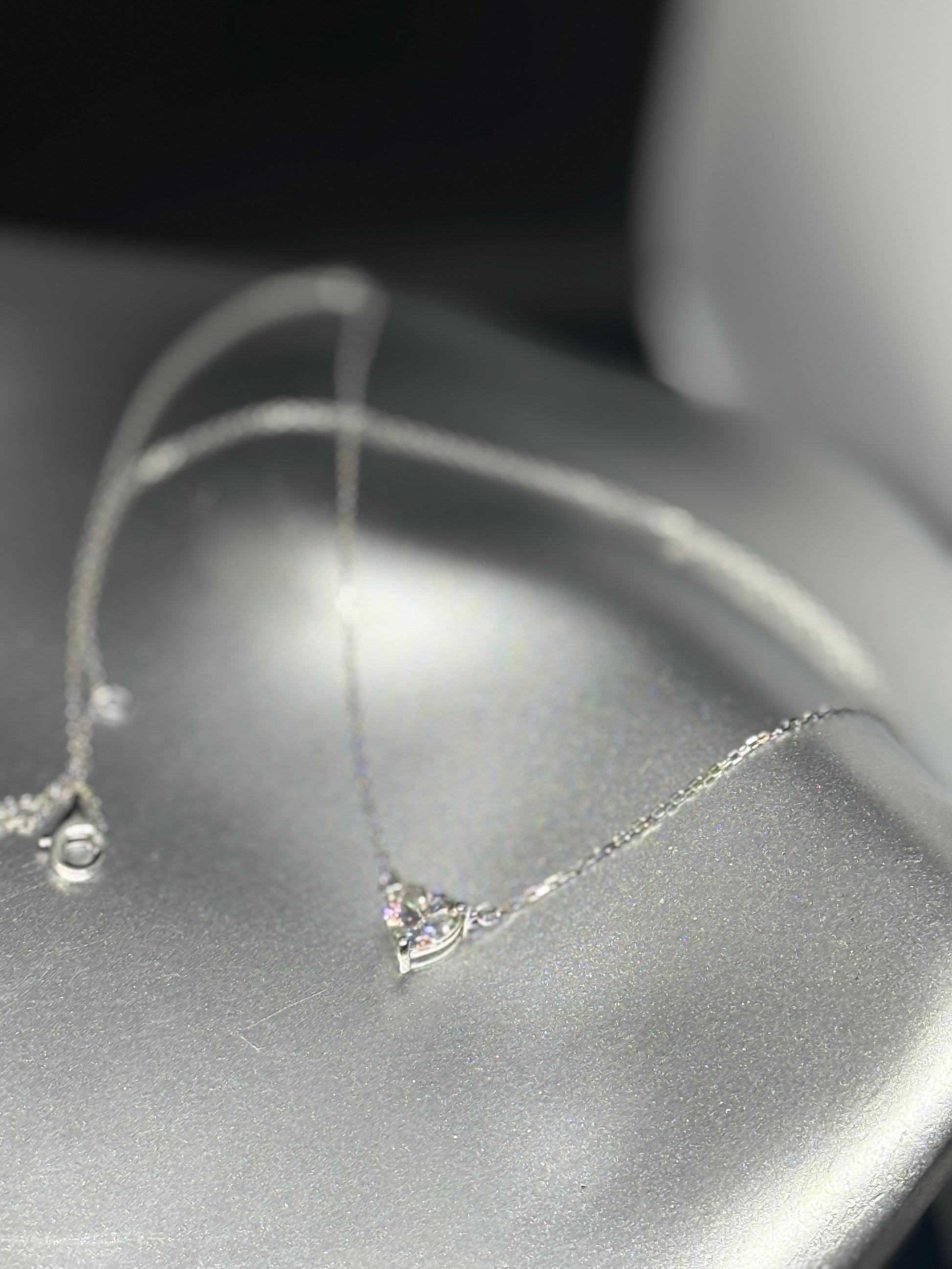 Crafted in polished sterling silver, this necklace showcases a dazzling moissanite heart known for its clarity and fire. A perfect everyday piece or meaningful gift.