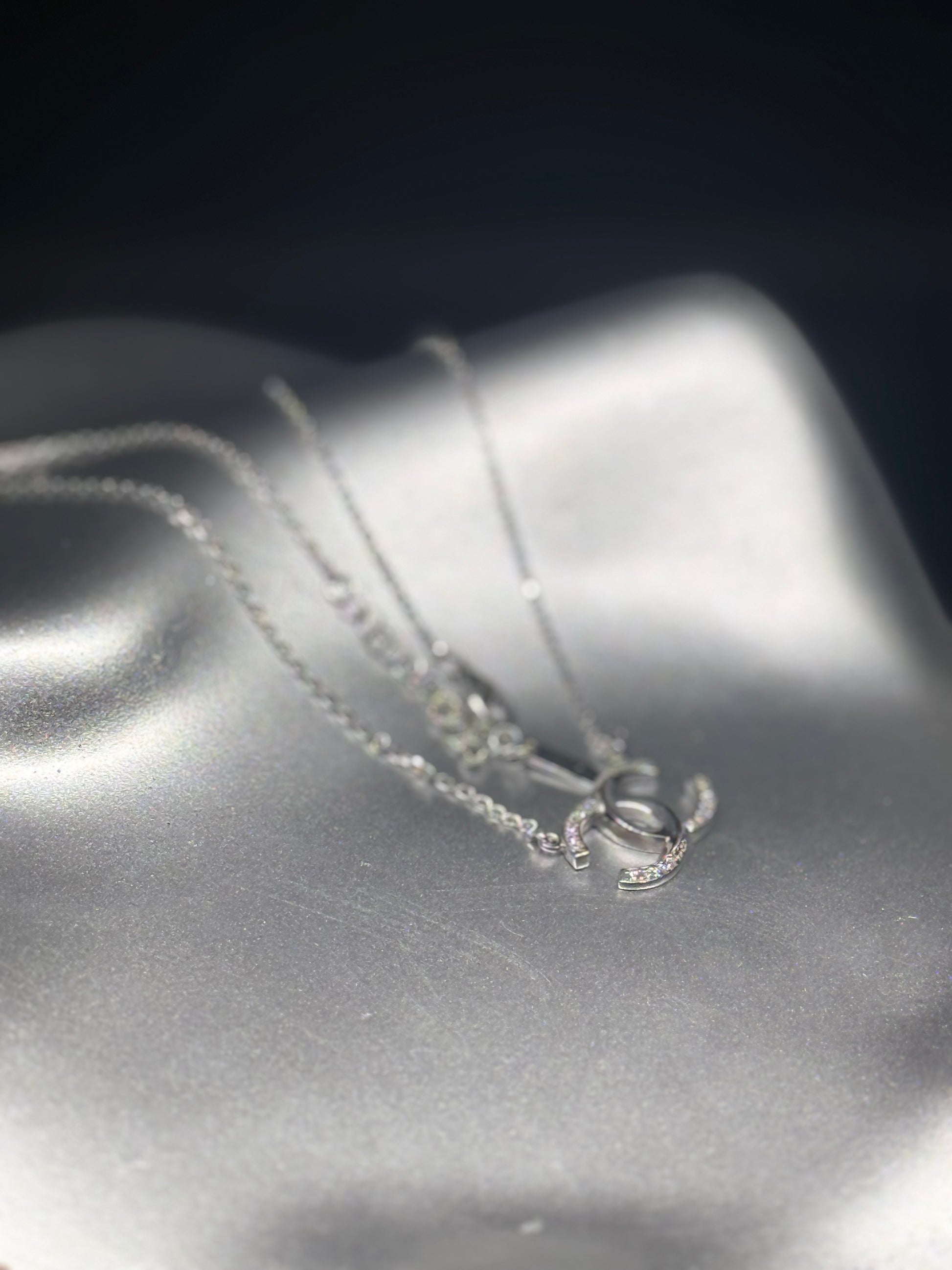 Crafted in real 925 sterling silver, this necklace brings a bright, modern shine with its iconic double-C inspired pendant. A must-have fashion piece.